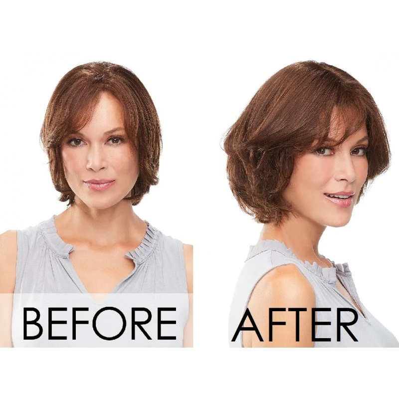 The easiPart French 8″ Topper by Jon Renau is perfect for the beginning stages of hair loss. This short, 8″ hair topper is made of Remy Human hair and is worn over the part, adding volume to thinning hair. The unique design is hand tied using French knotting, an exceptional knotting technique that creates the most natural look. EasiPart French also comes in 12″ and 18″ lengths, if you are looking for a longer piece. Renau exclusive colors cost an additional $31.90.