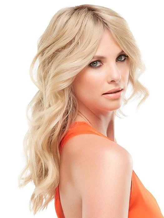 easiPart XL Human Hair 12” by easihair is a clip in top piece (Hair Topper) that adds seamless volume and coverage on the top of the head and along the part. The easiPart XL base is made of a fine hand-tied monofilament base that measures 5” x 3”-5.75”. easiPart XL is ideal for concealing thinning hair on the top and along the part. The placement, size, and shape add volume and thickness overall and also covers root growth in between color services.