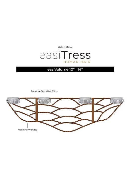 The easiVolume 10″ human hair extension by Jon Renau gives you luscious hair in minutes with its easy one-piece clip-in hair extension. This extension is made with Chinese Human Hair, so this style will easily blend into your natural hair. You can even use heat on this extension, so you can enjoy versatile styling. Available in 14″ and 18″ lengths.