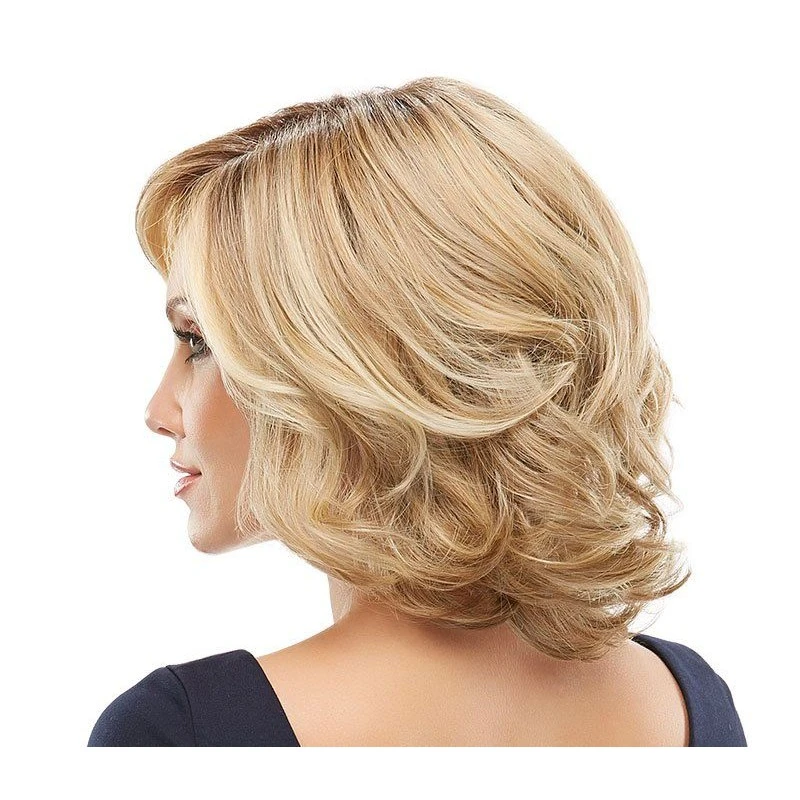 The Elizabeth wig by Jon Renau is a sassy little cute wig with flirty layers that adds bohemian allure to this classic bob. The heat stylable heat defiant fiber, lace front and hand tied monotop create a superbly natural look and feel. The length is perfect for any face shape, from oval to square, to round to diamond shaped. You will feel so pretty in this flirty layered bob. The Elizabeth comes in 29 beautiful colors to choose from. A few of the options would be hot fudge, shaded praline, crème brulee, and shaded peaches and crème. If you’re seeking a possible alternative to this wig, the Haute Wig by Jon Renau could be a lovely option for you. We have many short length wigs and medium length wig that might be of interest to you. We have a variety of wigs available for purchase, including synthetic and natural hair wigs. Long wigs, short wigs, wavy wigs, curly wigs, and straight wigs. Any kind of wig or hair piece you’re in search of you should be able to find at Wigs by Patti’s Pearls. With so many options, you’re bound to find the perfect fit.