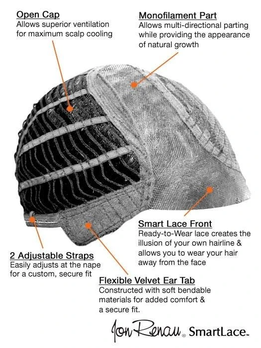 The Haute Wig by Jon Renau can be styled poshly polished or tightly curled. This classic chin length bob wig can be worn as it comes ready to wear or styled with heat, thanks to HD heat defiant fiber. The SmartLace cap construction creates a perfectly natural hairline for a flawlessly beautiful look.