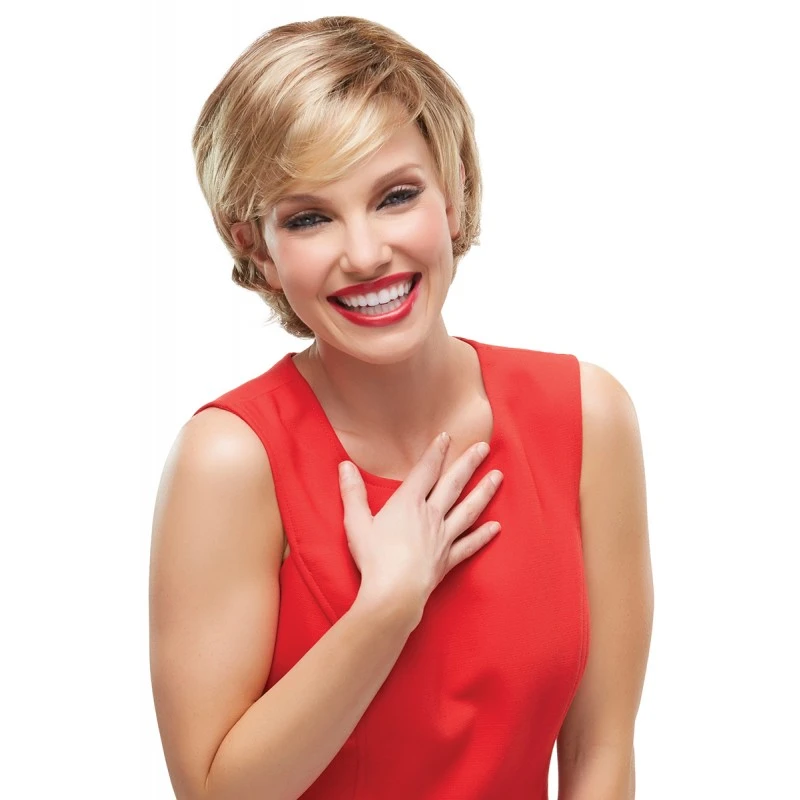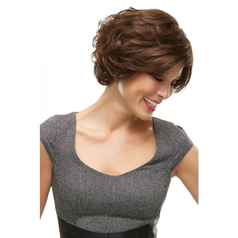 A playfully textured bob with soft, face-framing layers, this SmartLace style mimics natural growth with a lace front hairline and monofilament top and crown.