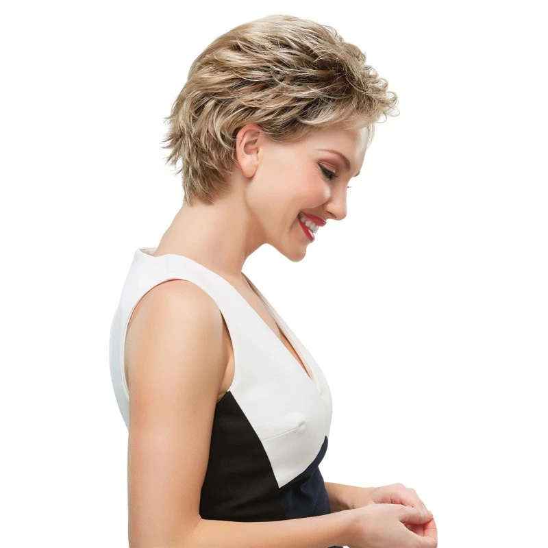 Designed for easy wearability and comfort, this petite style exudes the natural body and movement of loose, short layers on a translucent monofilament base.