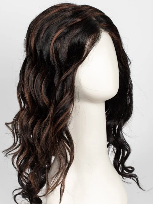 Sarah Large by Jon Renau has gorgeous wavy curls that never fail to impress! The 100% hand tied monofilament cap and Smart Lace front look supremely natural and offer endless styling options to the front hairline.